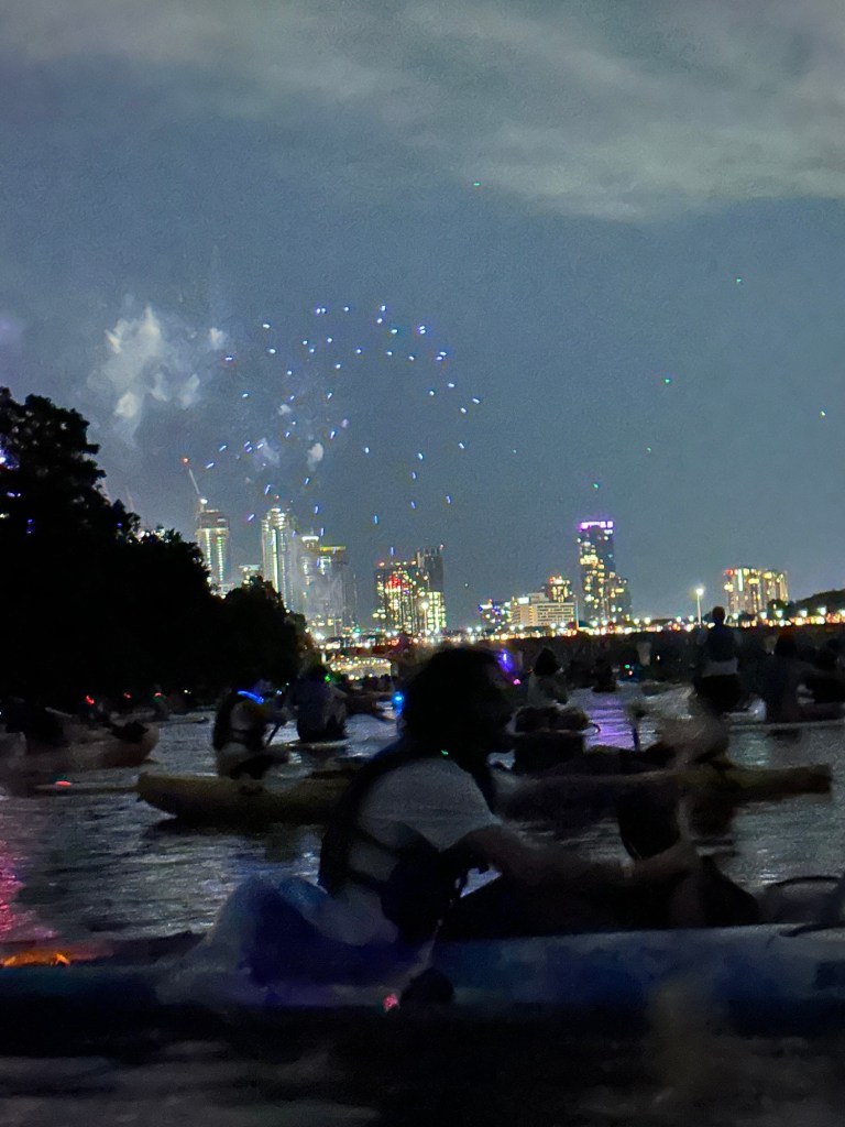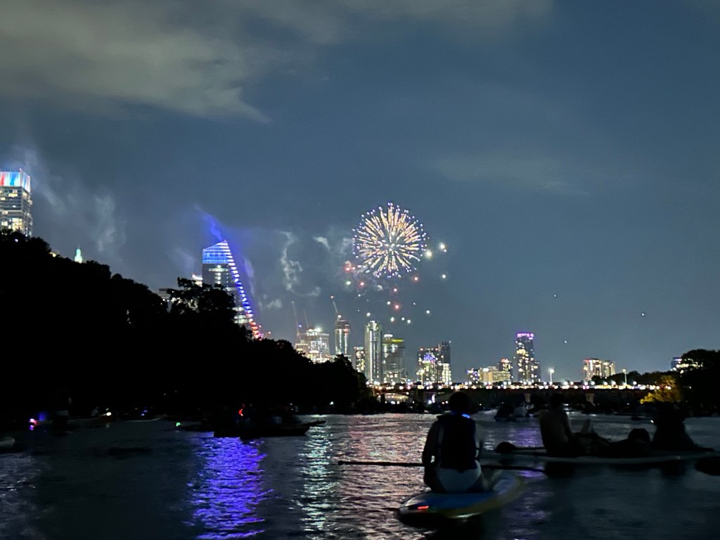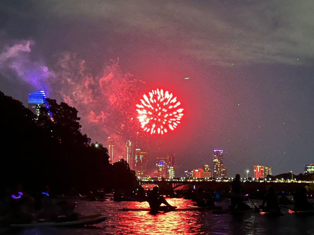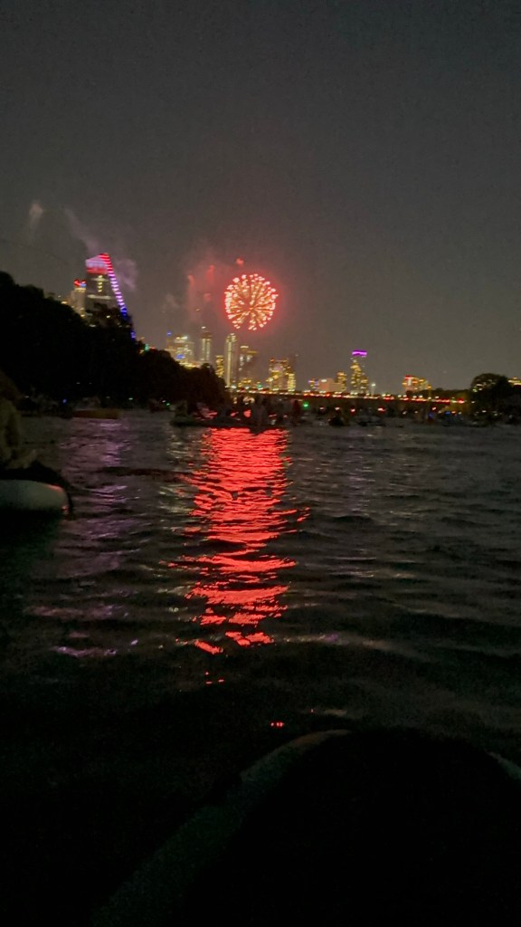 A few minutes later, you hear a boom and see pretty colors shooting off from a distance. Looks like they’re coming off a building. All the spectators in the water have cameras out taking photos and footage of people drinking, smoking, laughing, conversing, and yelling happy Fourth of July. The last about 30 minutes was a pretty sight to see.